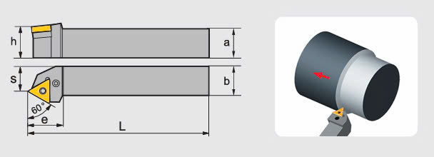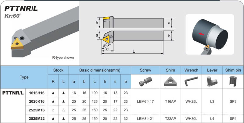 _Cán dao tiện PTTNR/L gồm có cán trái PTTNL và cán phải PTTNR phù hợp với yêu cầu gia công.