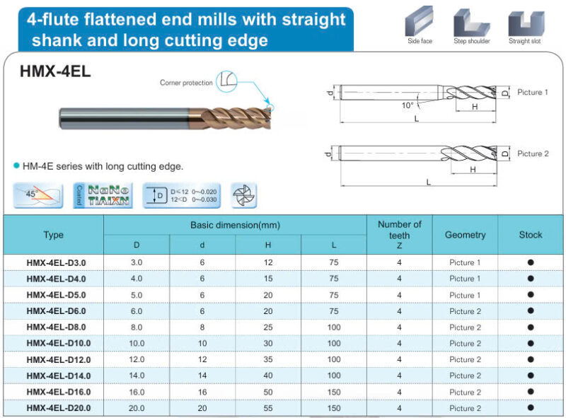 Dao phay 4 me lưỡi cắt dài cho thép sau nhiệt ~68HRC mã HMX-4EL hãng ZCCCT