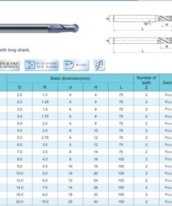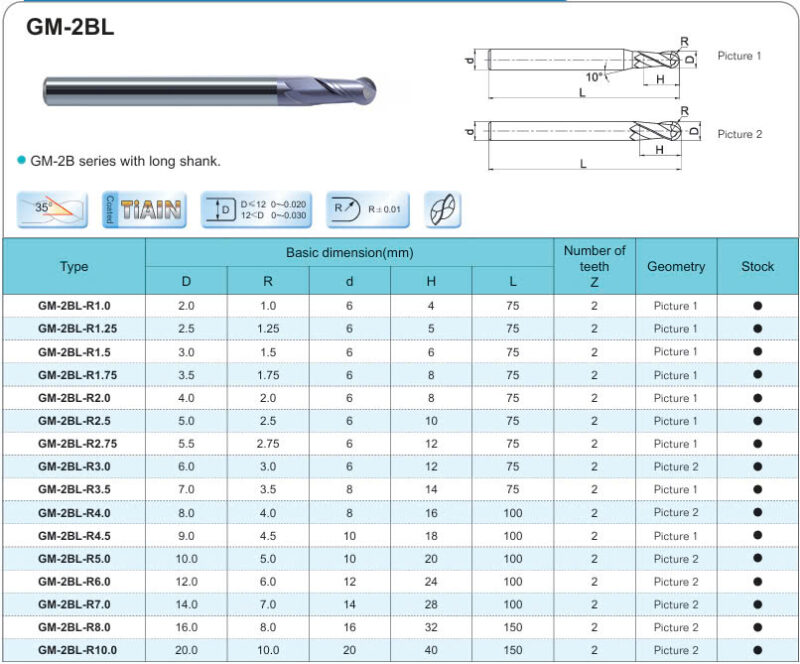 Thông số kỹ thuật của dao phay cầu GM-2BL