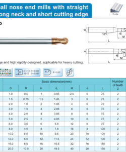 1. Dao phay cầu 2 me cổ dài cho thép ~68HRC mã HMX-2BFP hãng ZCCCT là dòng sản phẩm nổi bật, được dùng phổ biến trong gia công cơ khí. Nhờ những tính năng như là độ bền cao, tối ưu chi phí, khả năng cắt gọt chính xác và hiệu suất gia công ổn định. Với cổ dài và lưỡi cắt ngắn thích hợp phay hốc sâu, rãnh, phay biên dạng Profile tải nặng cho thép có độ cứng lên đến ~68HRC. Lớp phủ NaNo TiAIXN giúp tuổi thọ của dao tốt hơn nhiều..