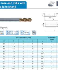 1. Dao phay cầu 4 me chuôi dài cho thép ~68HRC mã HMX-4BL hãng ZCCCT là dòng sản phẩm nổi bật, được dùng phổ biến trong gia công cơ khí. Nhờ những tính năng như là độ bền cao, tối ưu chi phí, khả năng cắt gọt chính xác và hiệu suất gia công ổn định. Với chuôi dài thích hợp phay hốc sâu, rãnh, phay biên dạng Profile cho thép có độ cứng lên đến ~68HRC. Lớp phủ NaNo TiAIXN giúp tuổi thọ của dao tốt hơn nhiều..