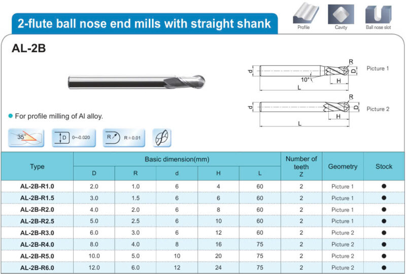 Dao phay cầu cho Nhôm 2 me mã AL-2B hãng ZCCCT