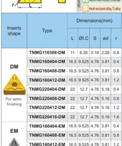 _ Kích thước 16 của mảnh TNMG16 sẽ trùng với kích thước 16 của cán dao DTGNR1616H16
